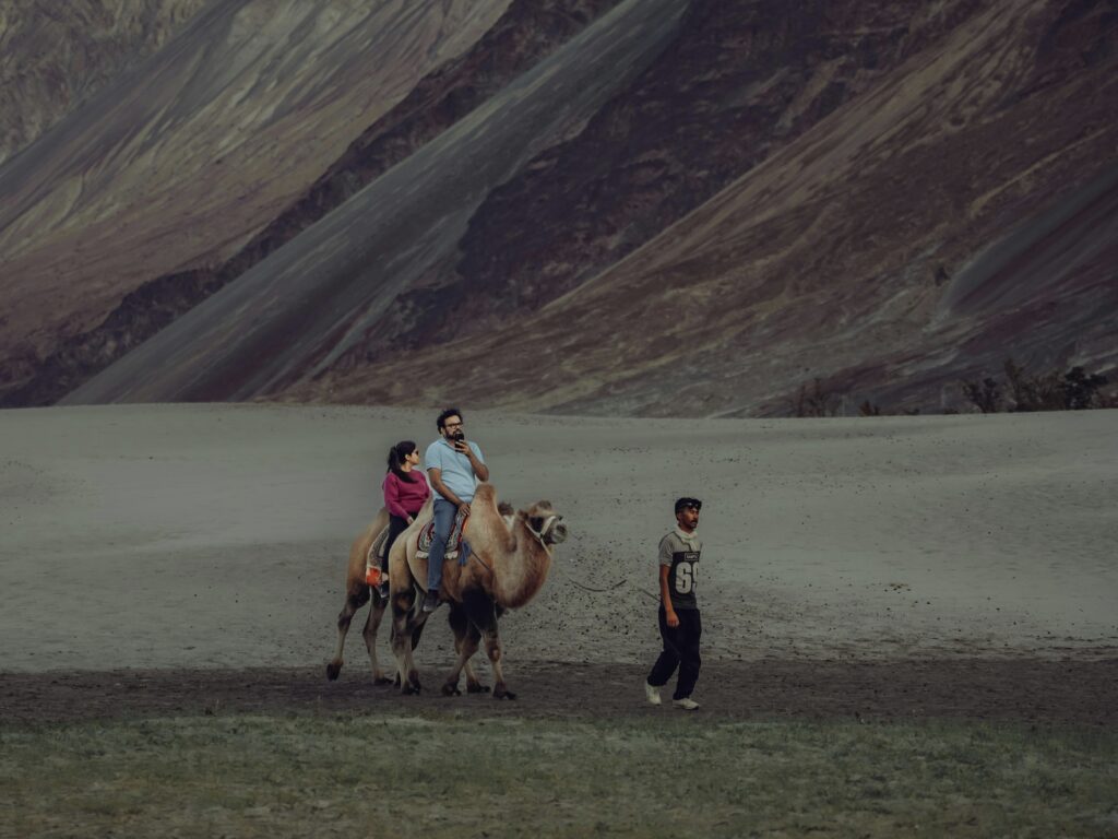 Adventure in Ladakh isn’t only about speed and height. Camel riding in Nubra Valley’s sand dunes offers a slower, cultural experience.